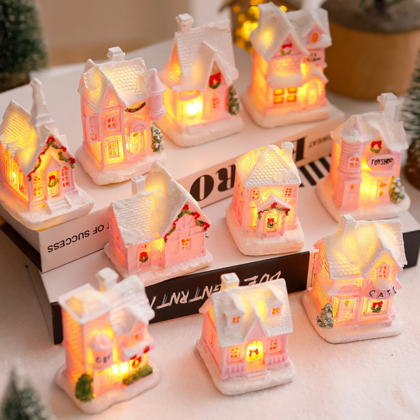 Christmas Small House LED Ornaments Resin Miniature Village Building Xmas Glow Decor Christmas Navidad Noel Party Gift