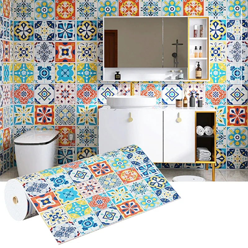 40cm European self-adhesive wallpaper waterproof and oil resistant kitchen wall stickers bathroom wallpaper cabinet wallpaper