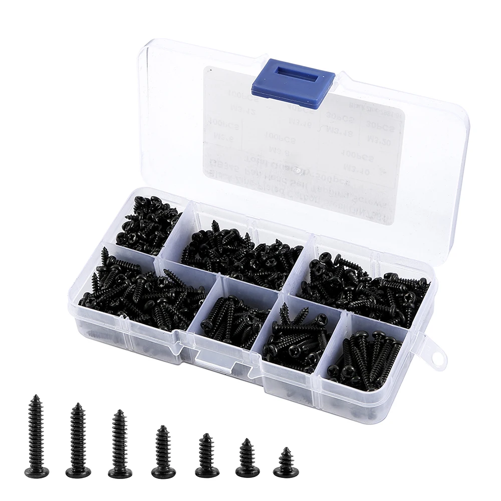 500pcs M3 Screws Black Self Tapping Screws Pan Head Cross Self Drilling Wood Screw Assortment Kit 6/8/10/12/16/18/20mm Carbon