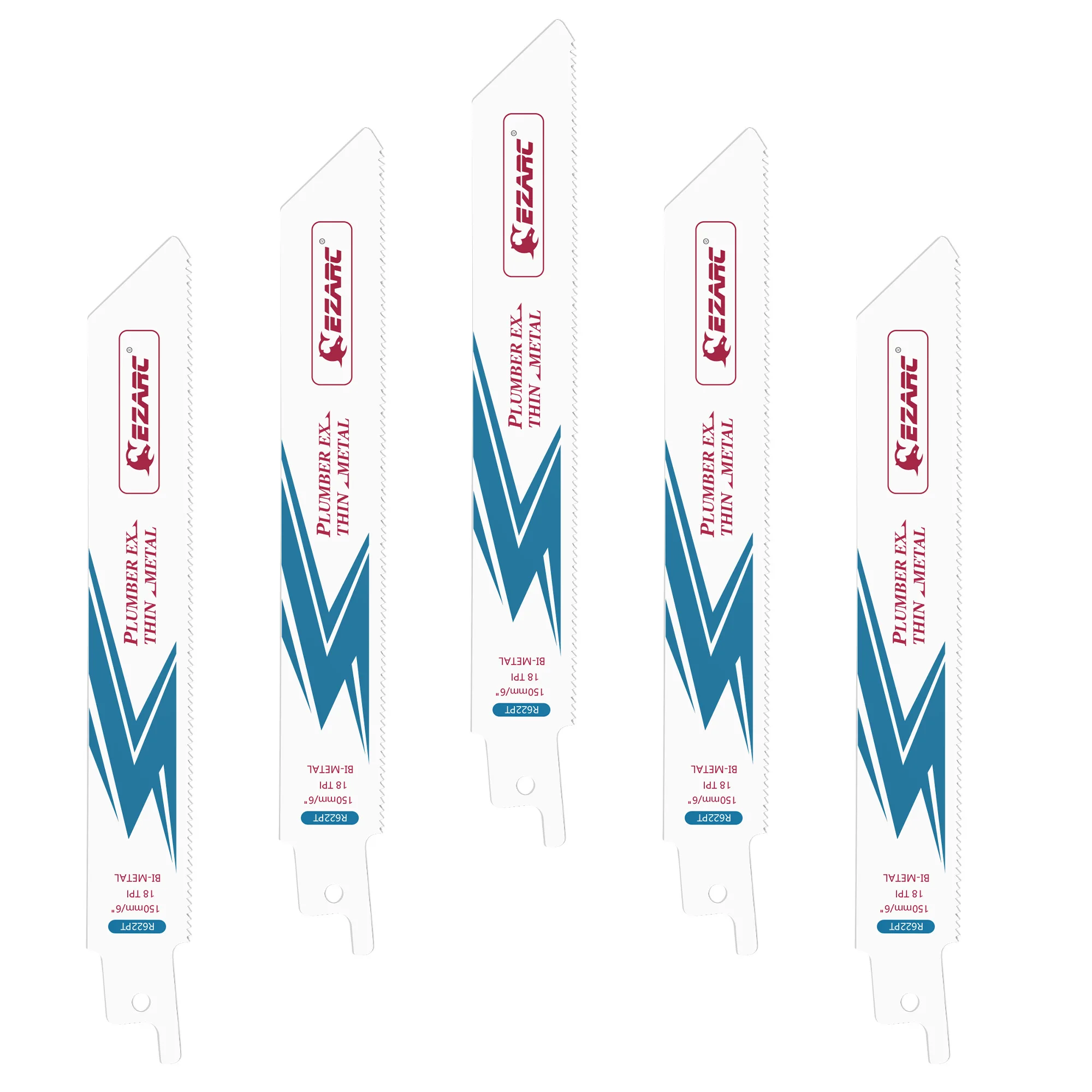 6-Inch Reciprocating Saw Blade 5Pcs Bi-Metal Cobalt Sabre Saw Blades for Thin-Medium Metal Cutting 150mm R622PT 18TPI