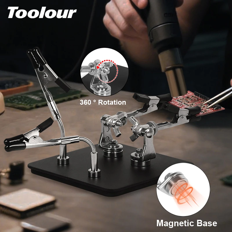 Toolour Soldering Helping Hands Third Hand Tool with Magnetic Base Adjustable Metal Circuit Board Holder for PCB Welding Repair