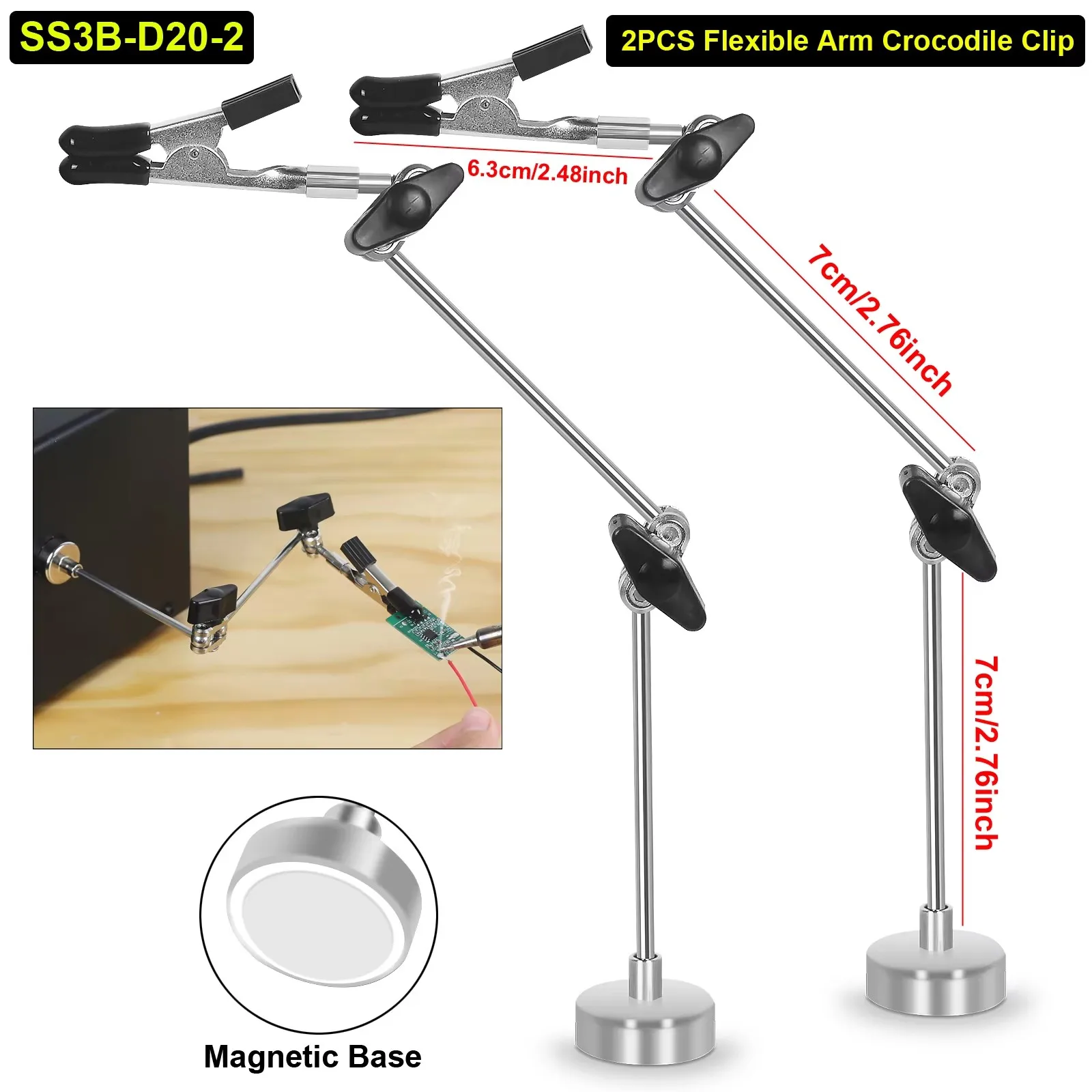 NEWACALOX Soldering Third Hand Helping Hands Tool with Magnetic Base Flexible Arm Alligator Clip for PCB/IC/SMD Welding Repair