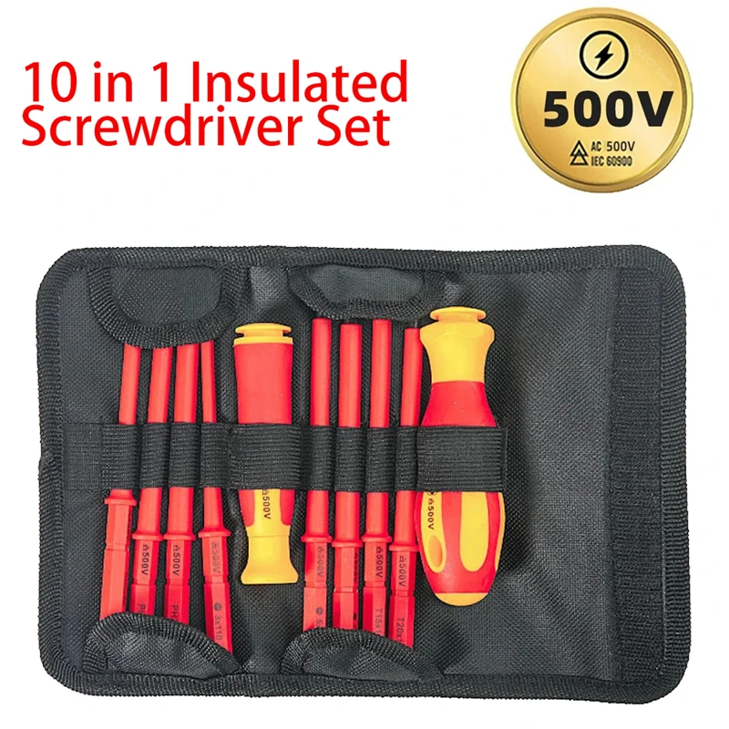 10 In 1 Interchangeable Blade 500V Insulated Screwdriver Set With Case Magnetic For Home Professional Electricians Repair Tools