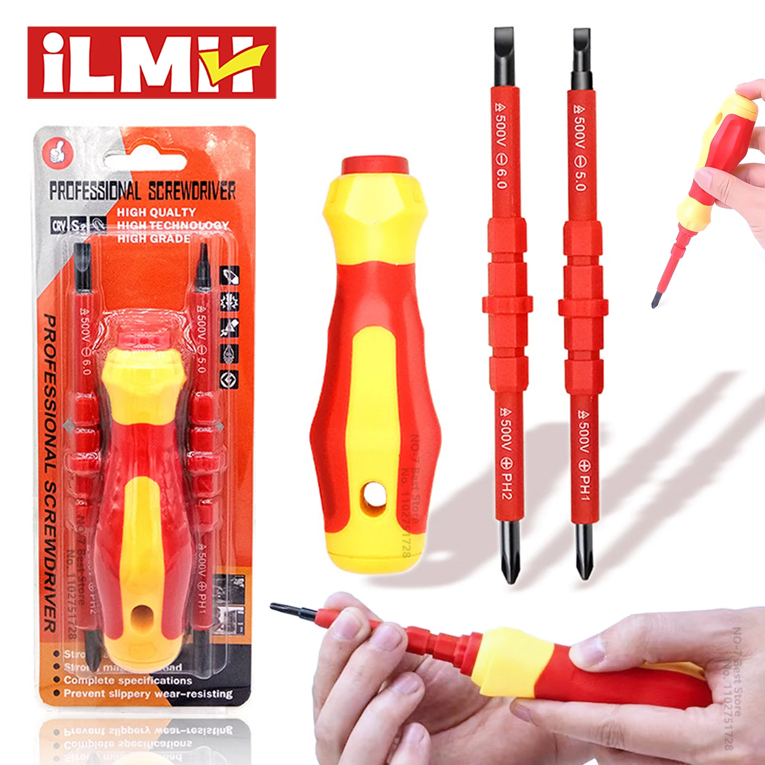 Magnetic Screwdriver Set - Insulated Phillips & Slotted Bits Multifunctional Hand Tools for Electricians