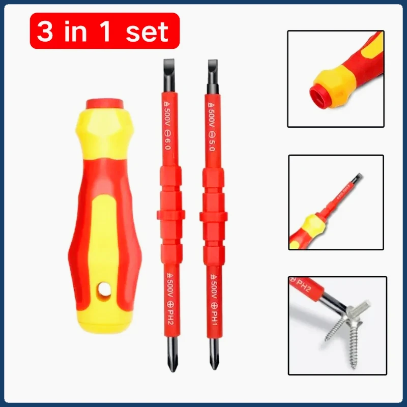 3 In 1 Insulated Screwdriver Set PH1/PH2 Multi-Purpose Screwdriver Electricians Slotted Cross Screwdriver Bit Tools Kit Set