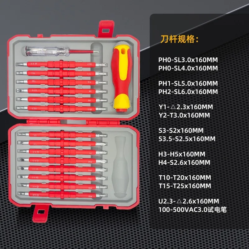 29-In-1 insulated screwdriver set, magnetic cross one-word electrician batch household maintenance tool