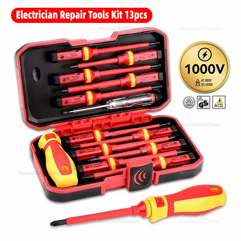13pcs Electrician Repair Tools Kit 1000V Insulated Screwdrivers Set with Magnetic Bits for Electrical Maintenance and Home DIY