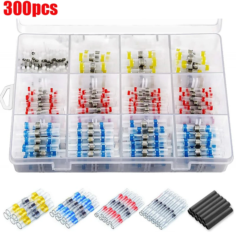 300Pcs Waterproof Solder Seal Wire Connectors Kit Self Soldering Heat Shrink Butt Connector Insulated Butt Splice Wire Terminals