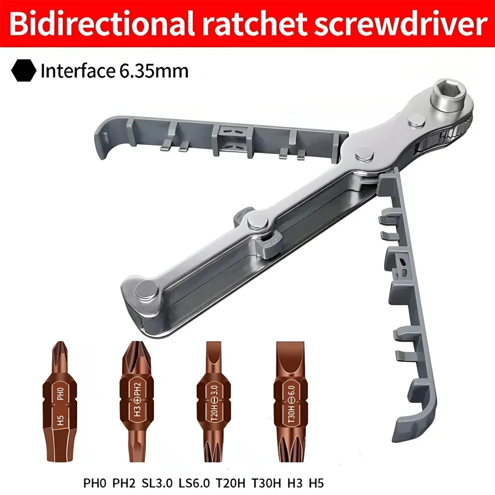 New Multifunctional Bidirectional Forward and Reverse Ratchet Screwdriver Elbow Flat Head Wrench Cross Screwdriver Slotted Tool