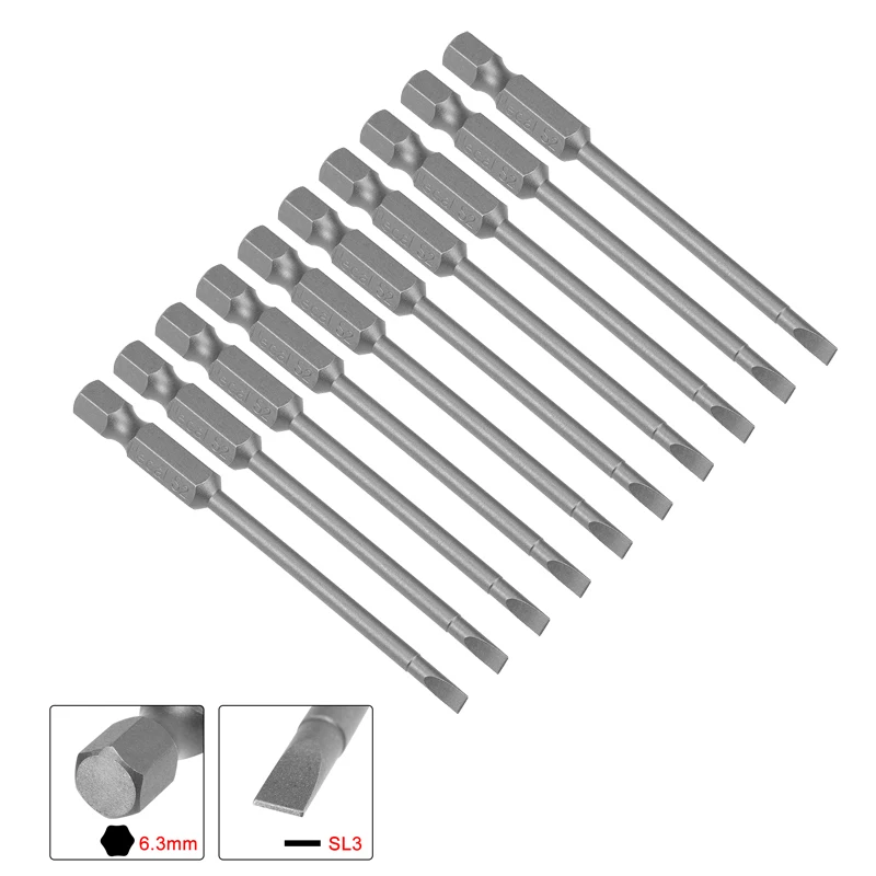 uxcell 10Pcs 3mm Slotted Tip Magnetic Flat Head Screwdriver Bits 1/4 Inch Hex Shank Screwdriver Set 3-inch Long S2 Hand Tools