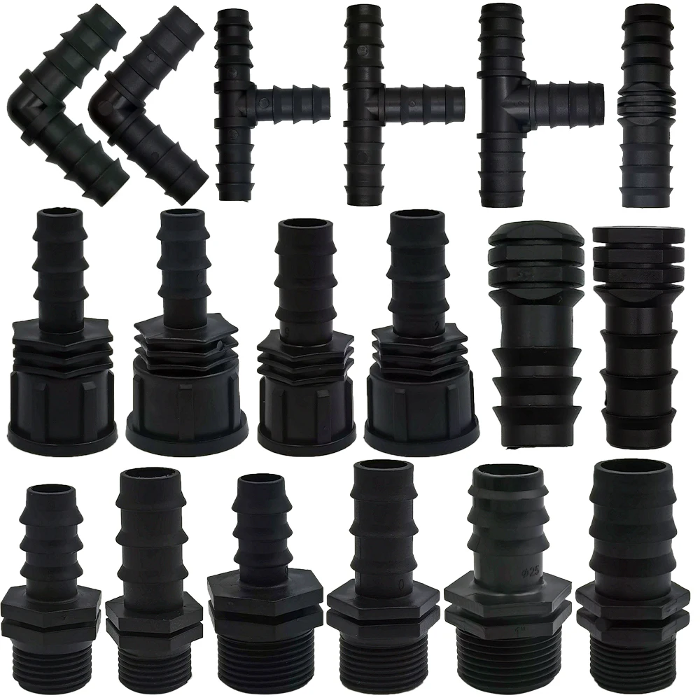 1/2" 3/4" Male Female Thread Connector To Barb 16mm 20mm 25mm PE Hose Adapter Tee Elbow Garden Irrigation Drip Watering System