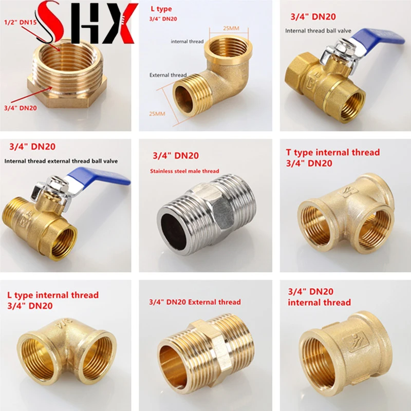 Brass Ball Valve 3/4" DN20 BSP Female Male Thread Tee Type Elbow Butt Joint Adapter Adapter Coupler Plumbing Fittings pipes