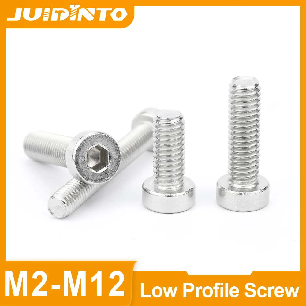 JIUDINTO 2-50pcs Hexagon Hex Socket Thin Low Cap Head Screw m2 m3 m4 m5 m6 m8 m10 Stainless Steel Allen Short Profile Head Bolt