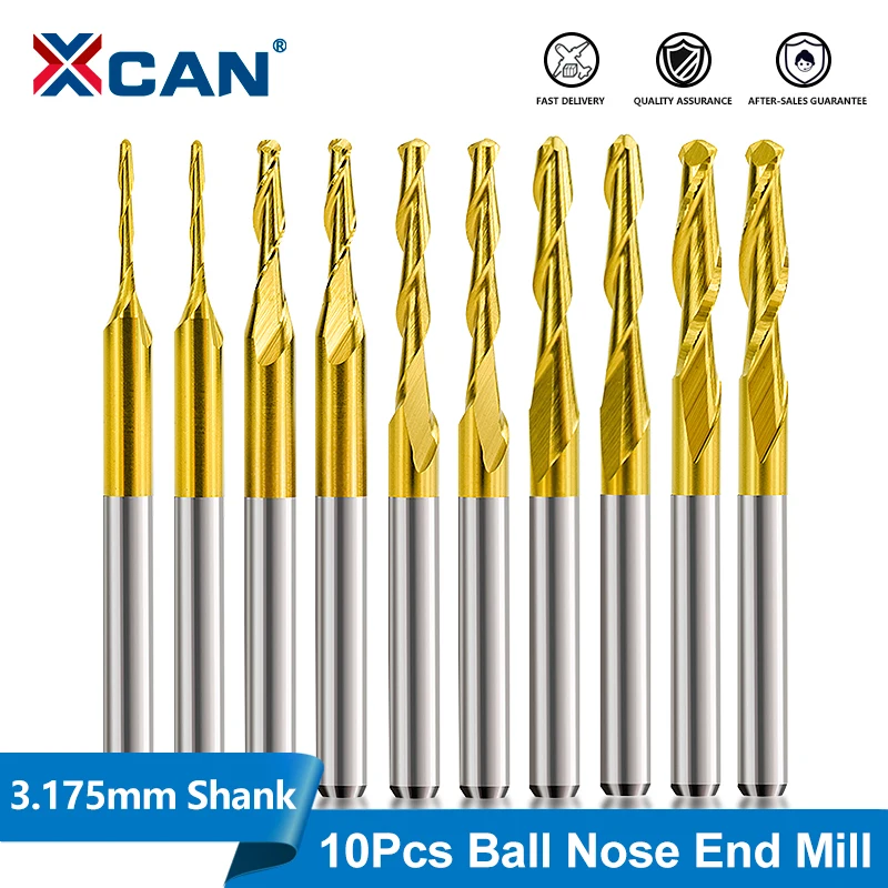 XCAN 10pcs Ball Nose End Mill 1/8'' Shank Spiral Milling Cutter TiALN Coated Carbide CNC Router Bit for Woodworking  Read more