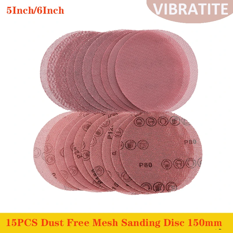 5/6 inch Mesh Sanding Disc 15PCS Dust Free Anti-Blocking Net Hook & Loop Sandpaper for Drywall Wood Metal Car Polishing Grinding