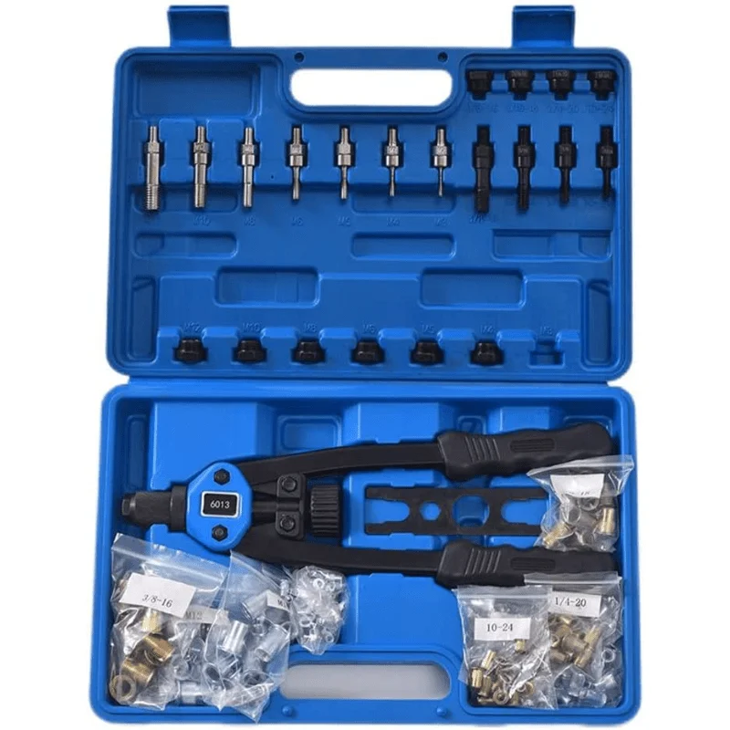 150PCS Professional Hand Rivnut Nut Thread Riveter Gun Repair Tool Set, 13” Rivnut Tool Kit with 11 Metric and SAE Mandrels