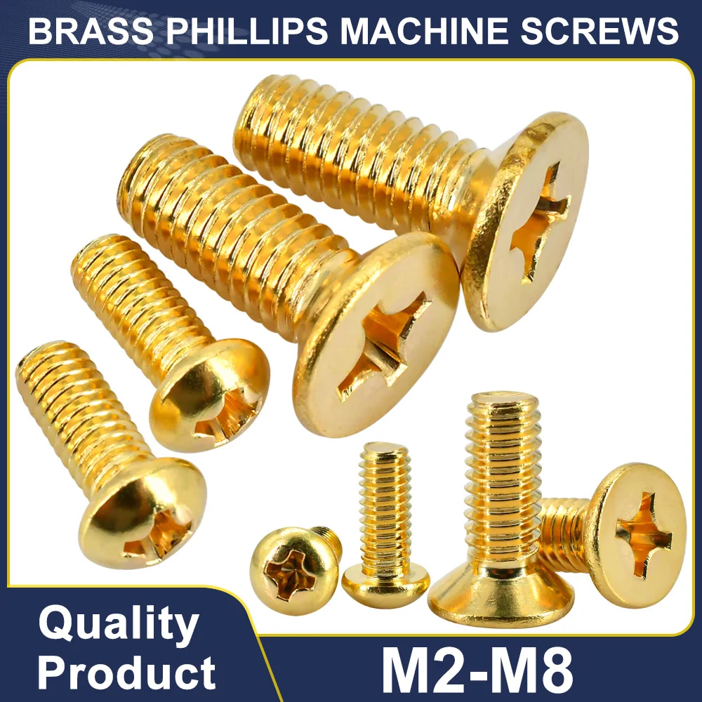 M2 M2.5 M3 M4 M5 M6 M8 Brass Phillips Screw Metric Threaded Bolts Cross Pan Screws Countersunk Flat Head Copper Matchine Screew  Read more