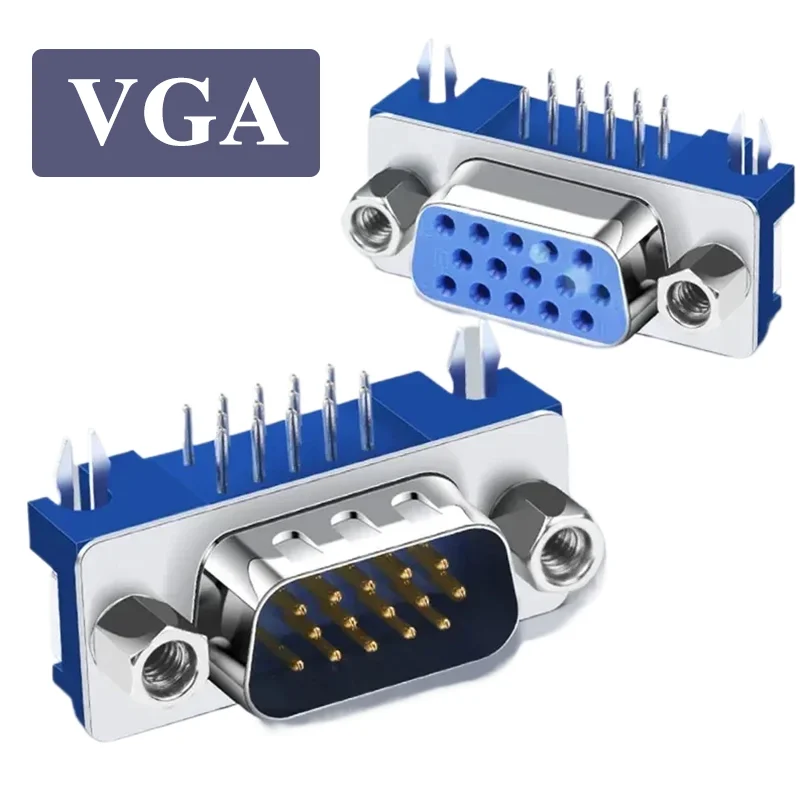 VGA DB15 Socket 3 Rows of 15 Needles PCB Welding Plate Male Female Connector DR15P 3.08/8.85mm Solid Pin 90° Terminal Fitting