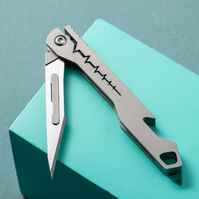 Titanium Alloy Folding Surgical Knife, Outdoor Portable Bottle Opening and Unboxing Knife, Comes with 10pcs Blades As A Gift