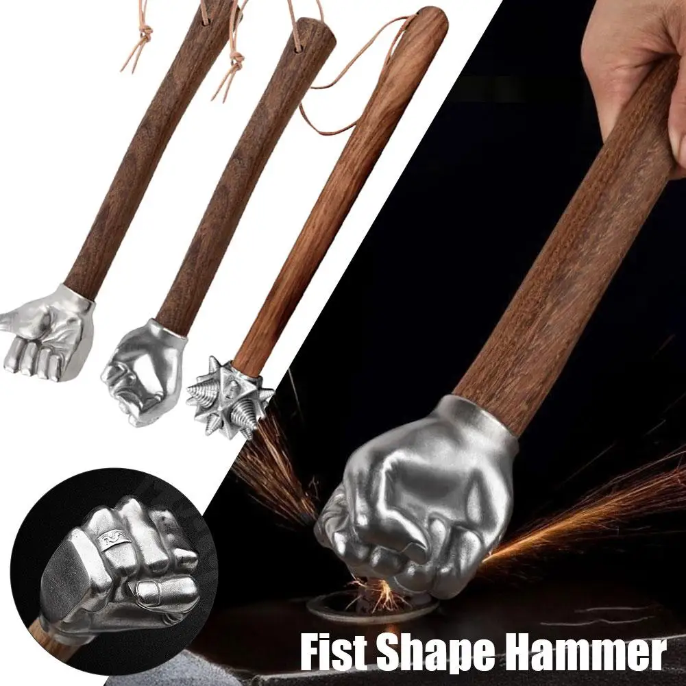 2025 New Creative Stainless Steel Fist Shape Hammer Wood Handle for Home Outdoor Camping Vehicle-mounted multi-function hammer