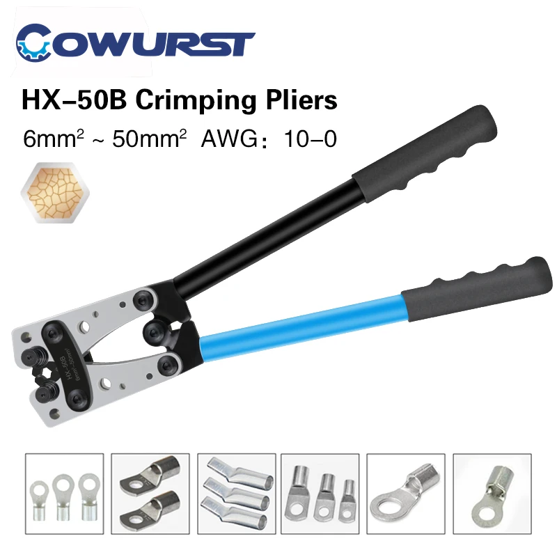 Portable Cable Hand Crimping Tool Labor-Saving Hand Tool HX-50B Crimping Pliers 6-50mm ²/ AWG 10-0 Ferrule Terminal Crimper