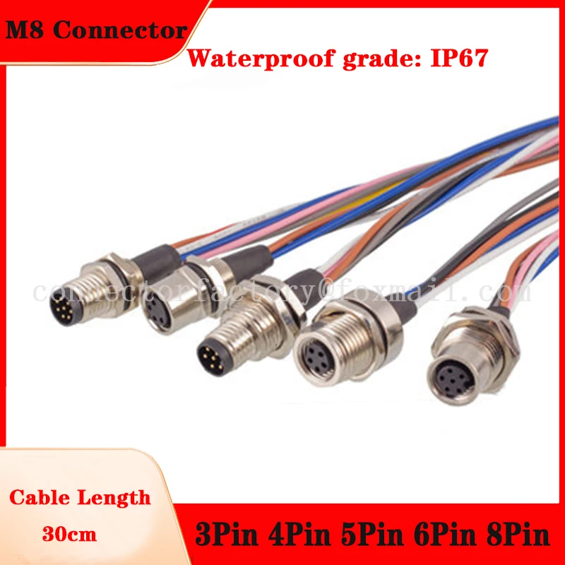 M8 3P 4P 5P 6P 8Pin Waterproof IP67 Aviation Male Female Socket With 30cm Cable Threaded Connector For Data And Telecom Systems