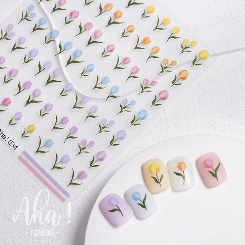 1pcs 3D Tulip Nail Art Sticker Spring Summer Daisy Flower Bouquet Self-Adhesive Decals 8x10cm Aha Kawaii Bear Rainbow Sliders