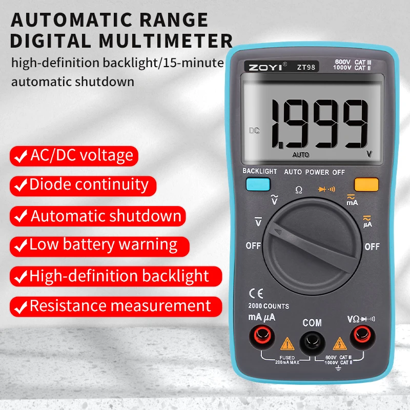 ZOYI Digital Multimeter ZT-98 Auto Range AC and DC Voltage Current Resistance On-off Buzzer Backlit Electrical Instrument Tester