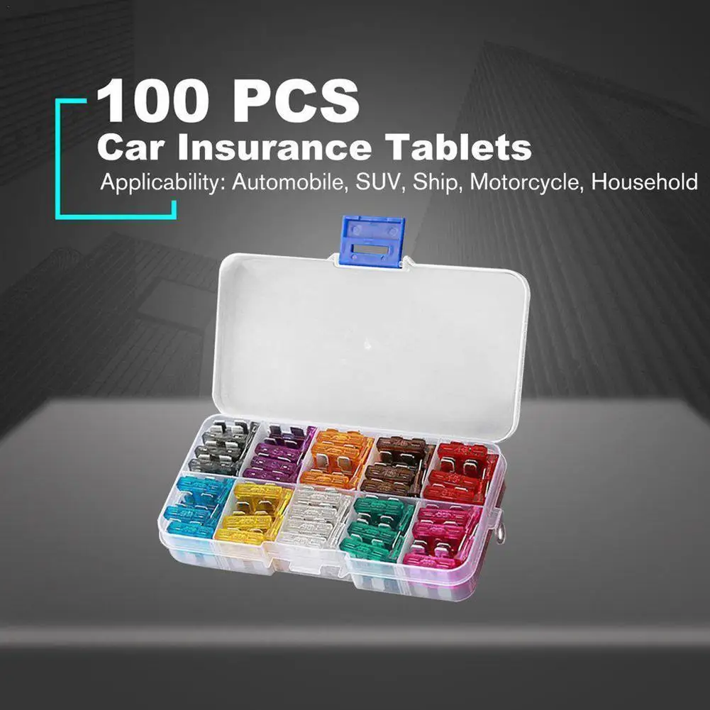 50/100 Pcs Car Fuse Insert 2A 3A 5A 7.5A 10A 15A 20A 25A 30A 35A Car Type Fuse Box Set For Universal Car Truck