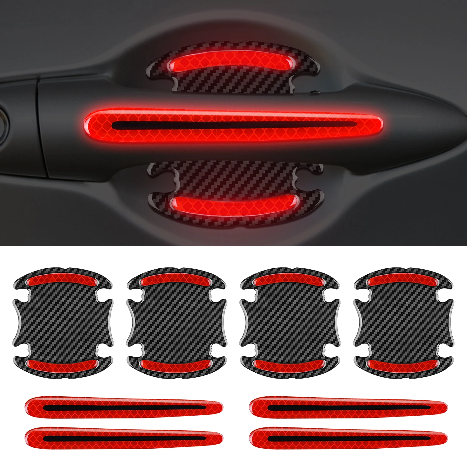 8PCS Car Door Bowl Handle Protector Safety Warning Anti-collision Anti-scratch Reflective Strip Exterior Protection Accessories