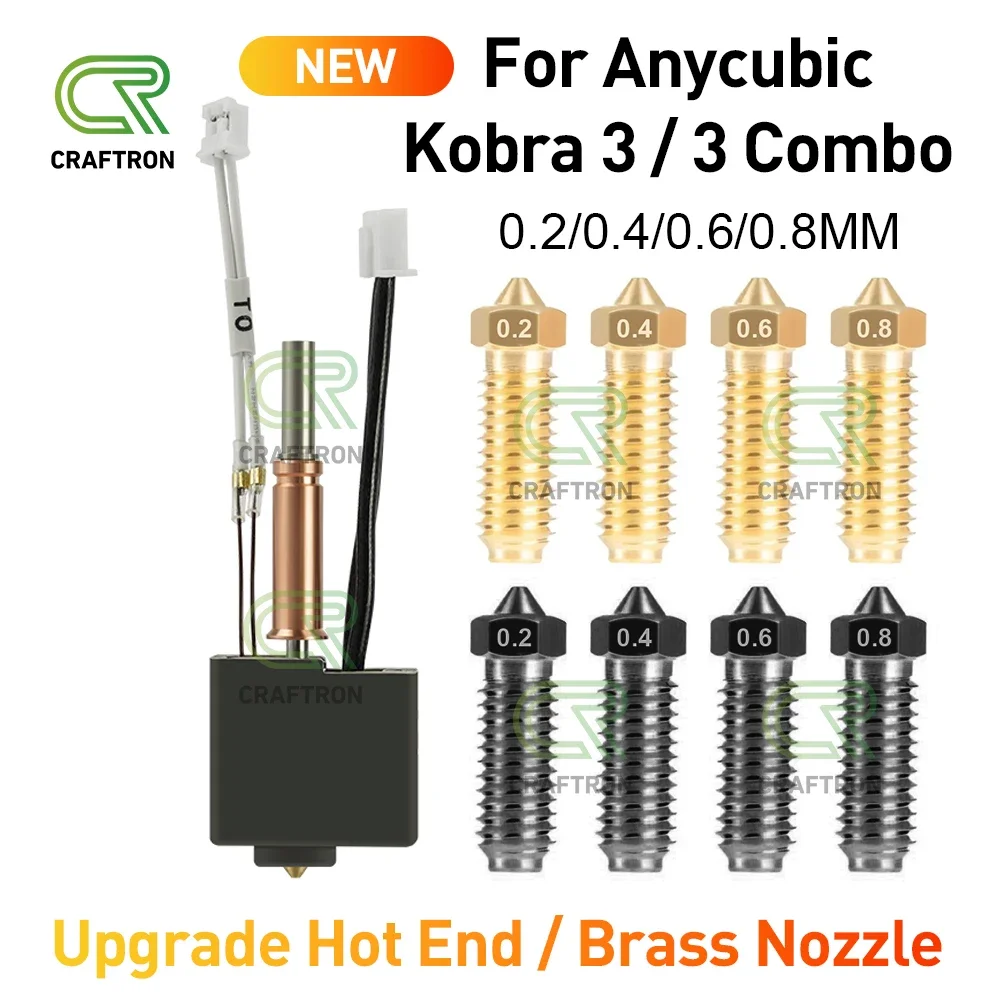 Upgrade For Anycubic Kobra 3 Combo Hotend Nozzle Brass Hardened Steel Nozzles Silicone Case 24V 50W 3D priner Accesories