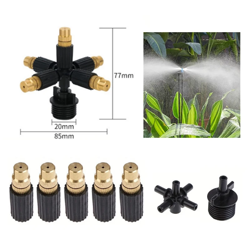 1PCS Horticultural all copper 1/2 spray 4-point cross five outlet atomizing nozzle adjustable atomizing water inverted nozzle
