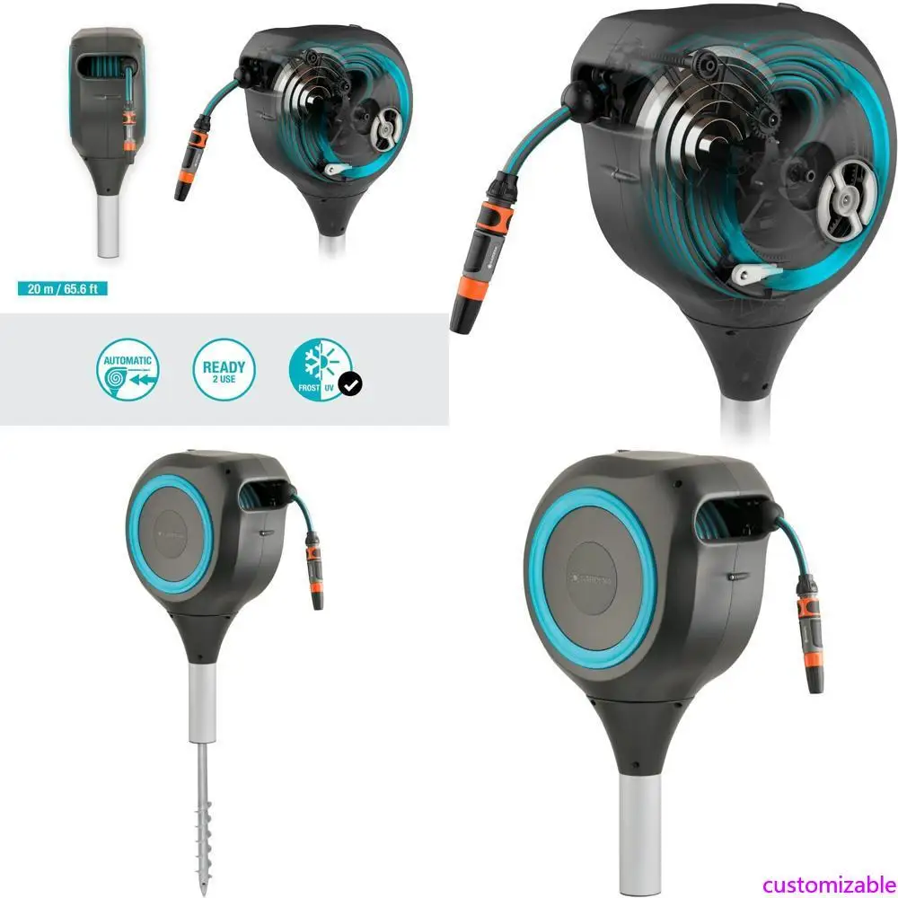 Automatic Retractable Garden Hose Reel, 66 Feet Long with Half-Inch Diameter, Metal Spike Mount, 360-Degree Swivel
