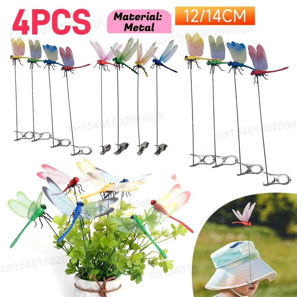 4Pcs Simulation Dragonfly Clip Bug Deterrent Realistic Dragonfly Hat Clip Bug Repellent Dragonfly Home Garden Decoration