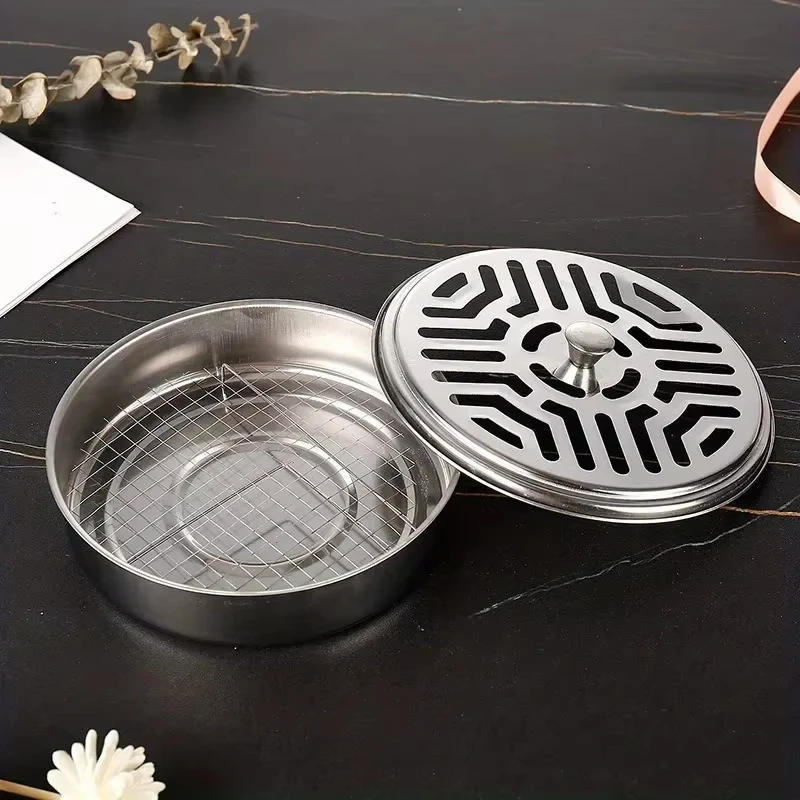 1pc Stainless steel mosquito coil box cover mosquito coil tray large ash tray outdoor portable mosquito coil holder windproof mo