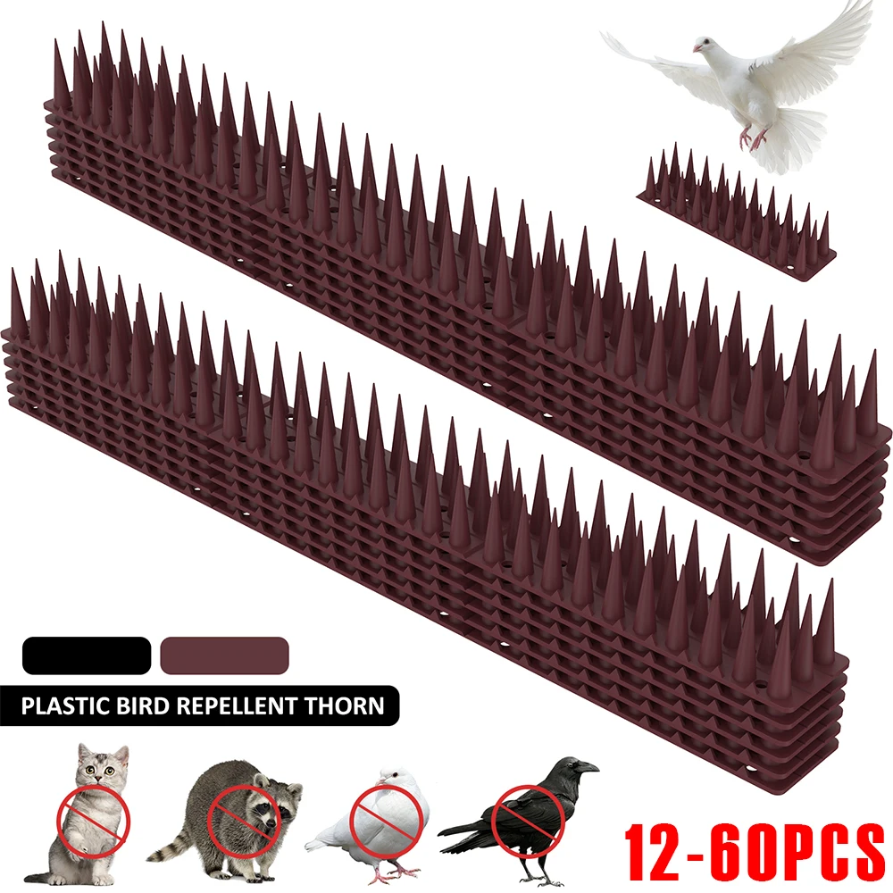 12-60Pcs Anti Climb Bird Spikes Fence Wall Spikes Stop Birds and Cats Sitting on Fence Cat Repellent Spike for Deterrent Burglar