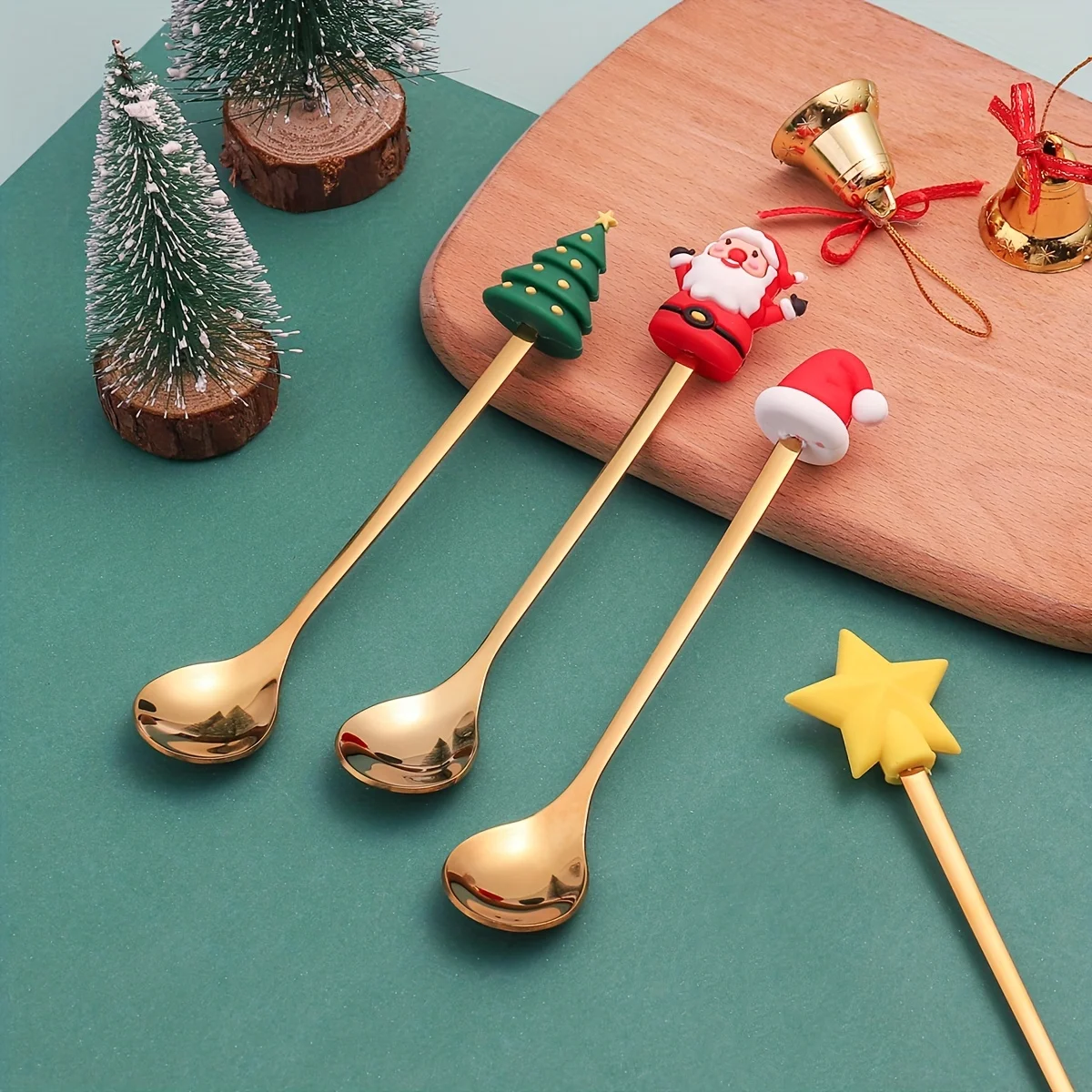 4pcs Christmas Coffee Spoon, Doll Cute Coffee Spoon Set, Stainless Steel Mixing Christmas Spoon, For Restaurant Christmas Party