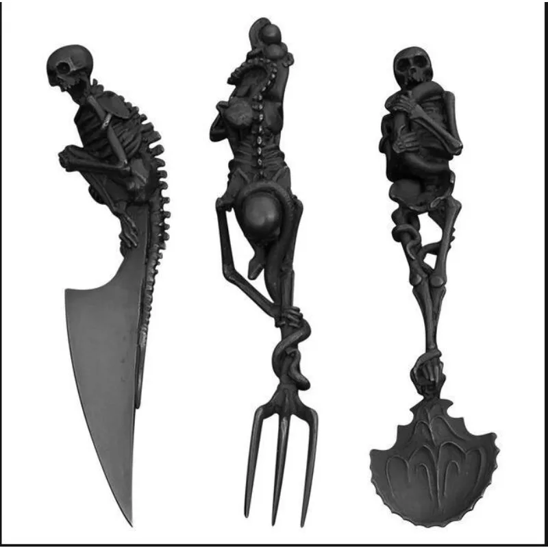 Gold Skeleton Skull Fork Spoon Funny Tableware Vintage Dinner Table Flatware Cutlery Set Metal Crafts Halloween Party Gifts