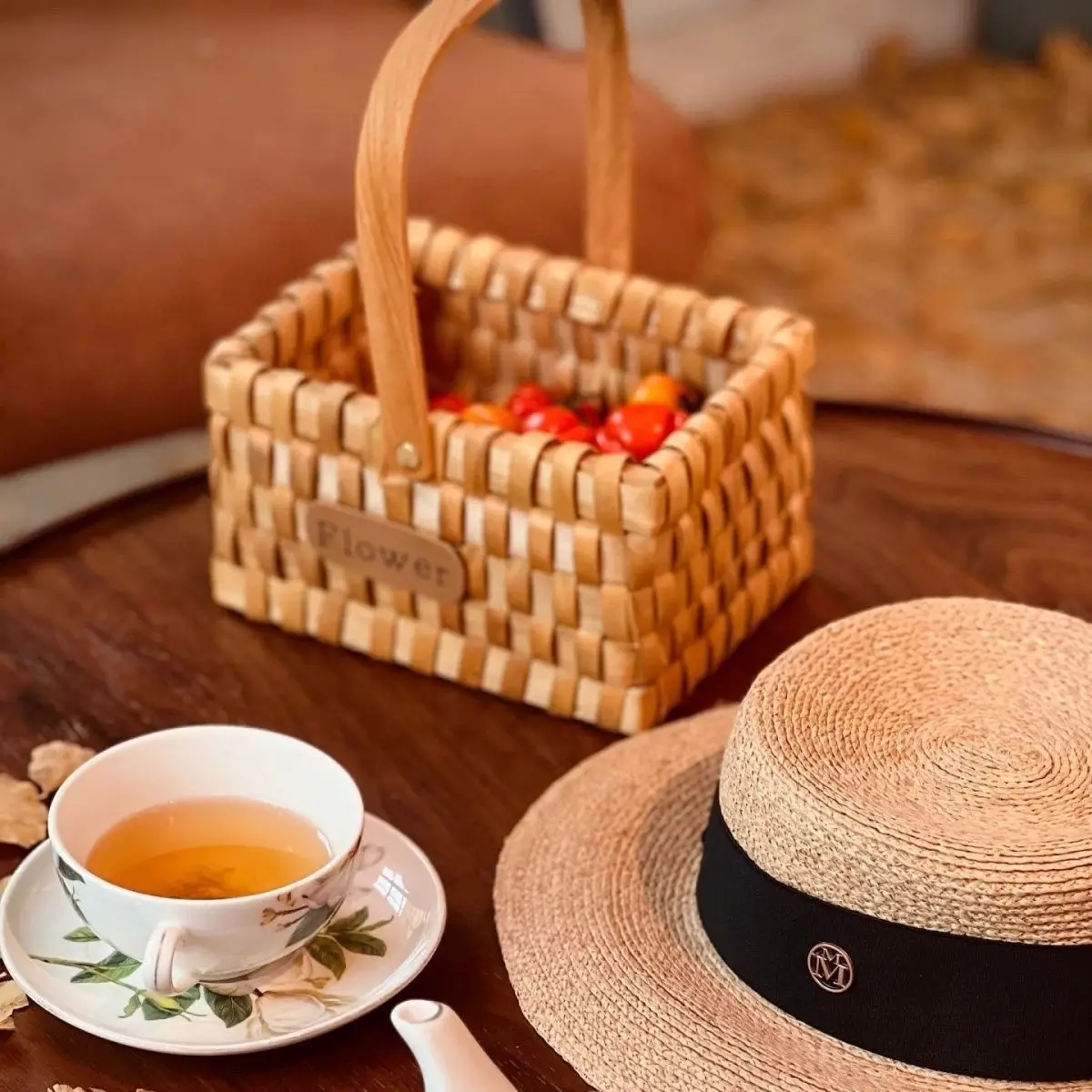 Mini flower basket with lace edge picnic flower basket, ornament storage basket, children's DIY hand woven hand-held basket