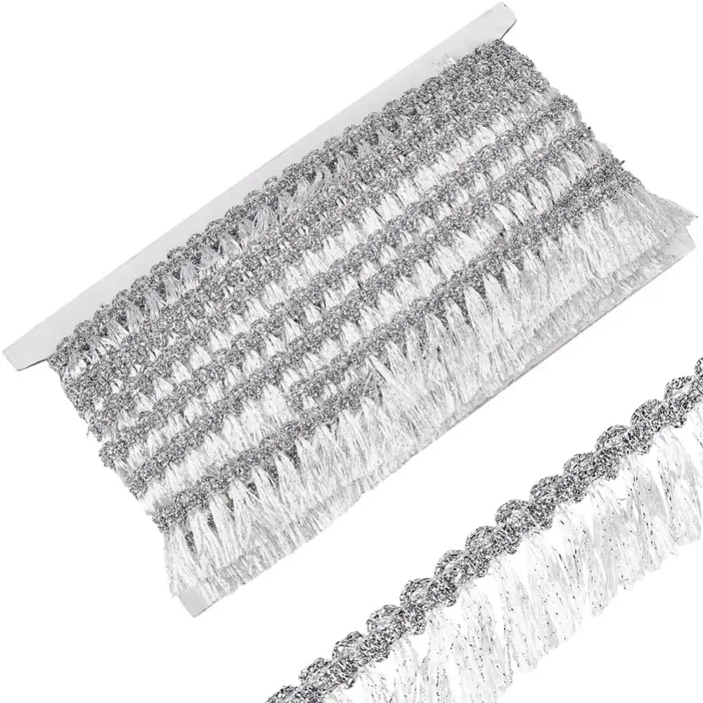 15Yds Metallic Fringe Tassel Trim Glitter Lace Trim Ribbon with Tassel 1-1/4 inch(32mm) Wide Edging Trimming