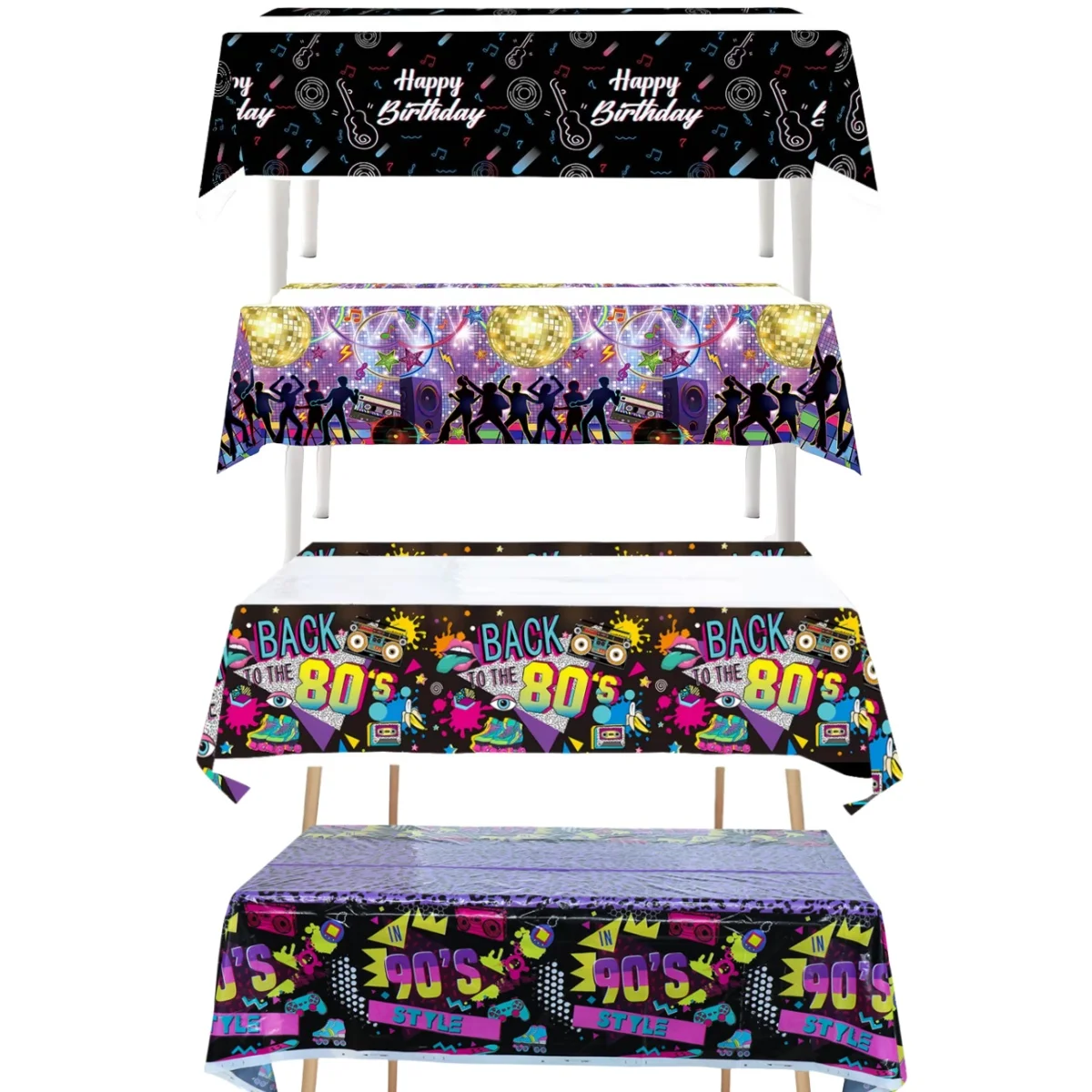Retro Disco Tablecloth Birthday Decoration 80s Tablecloth Disposable Table Cloth 90s Table Cover Adult Favor Gift Party Supplies