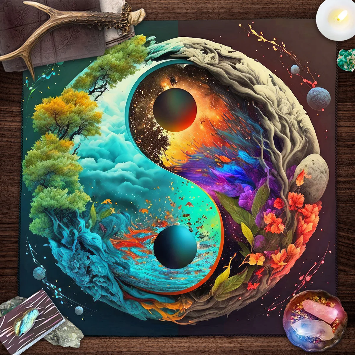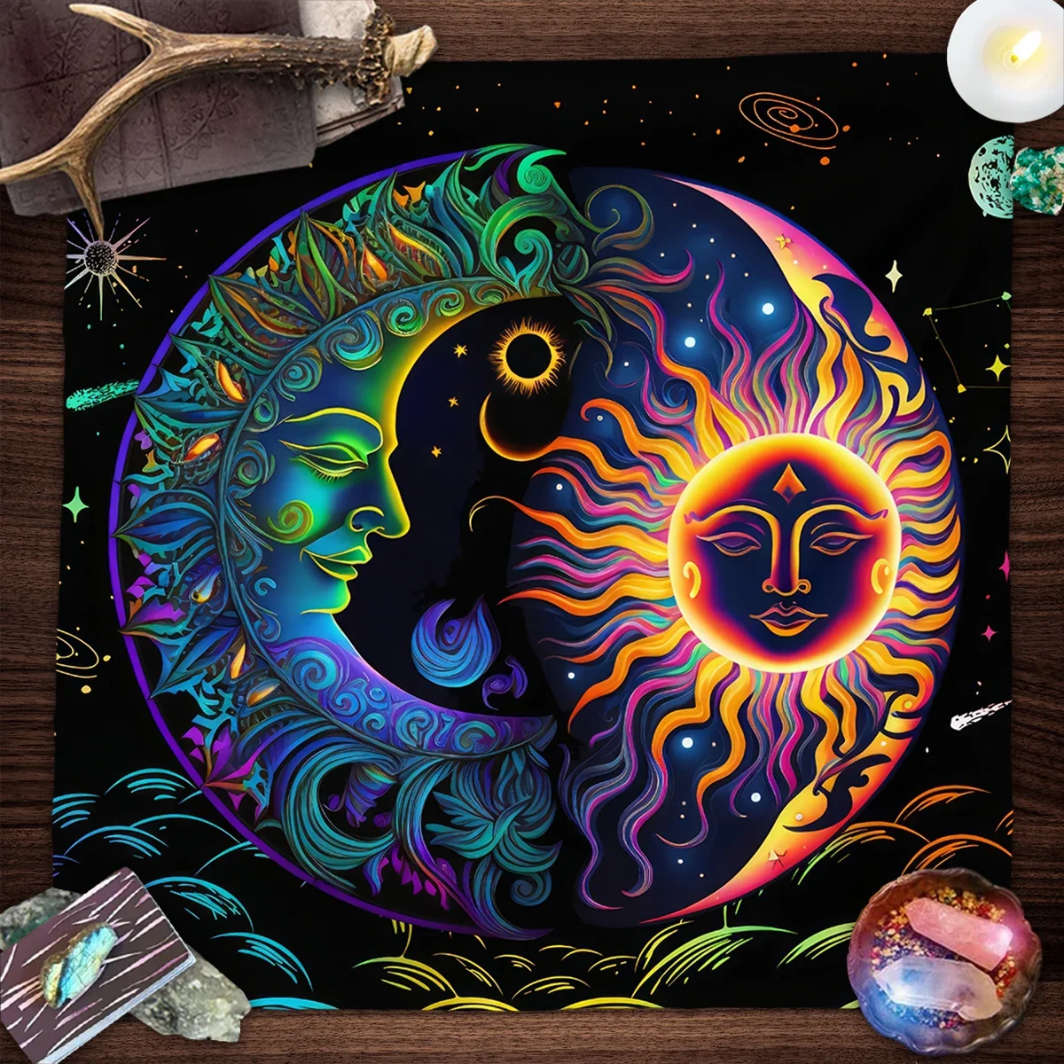 Mystical Colorful Sun and Moon Tarot Card Tablecloth Astrological Divination Altar Cloth Card Game Mat Witchcraft Witchy Decor
