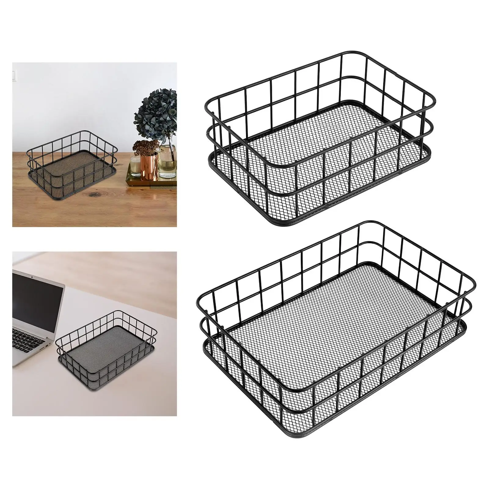 Wire Basket Decorative Rectangular Sturdy Farmhouse Style Kitchen Organizer for Kitchen Bathroom Laundry Room Cabinets Closets