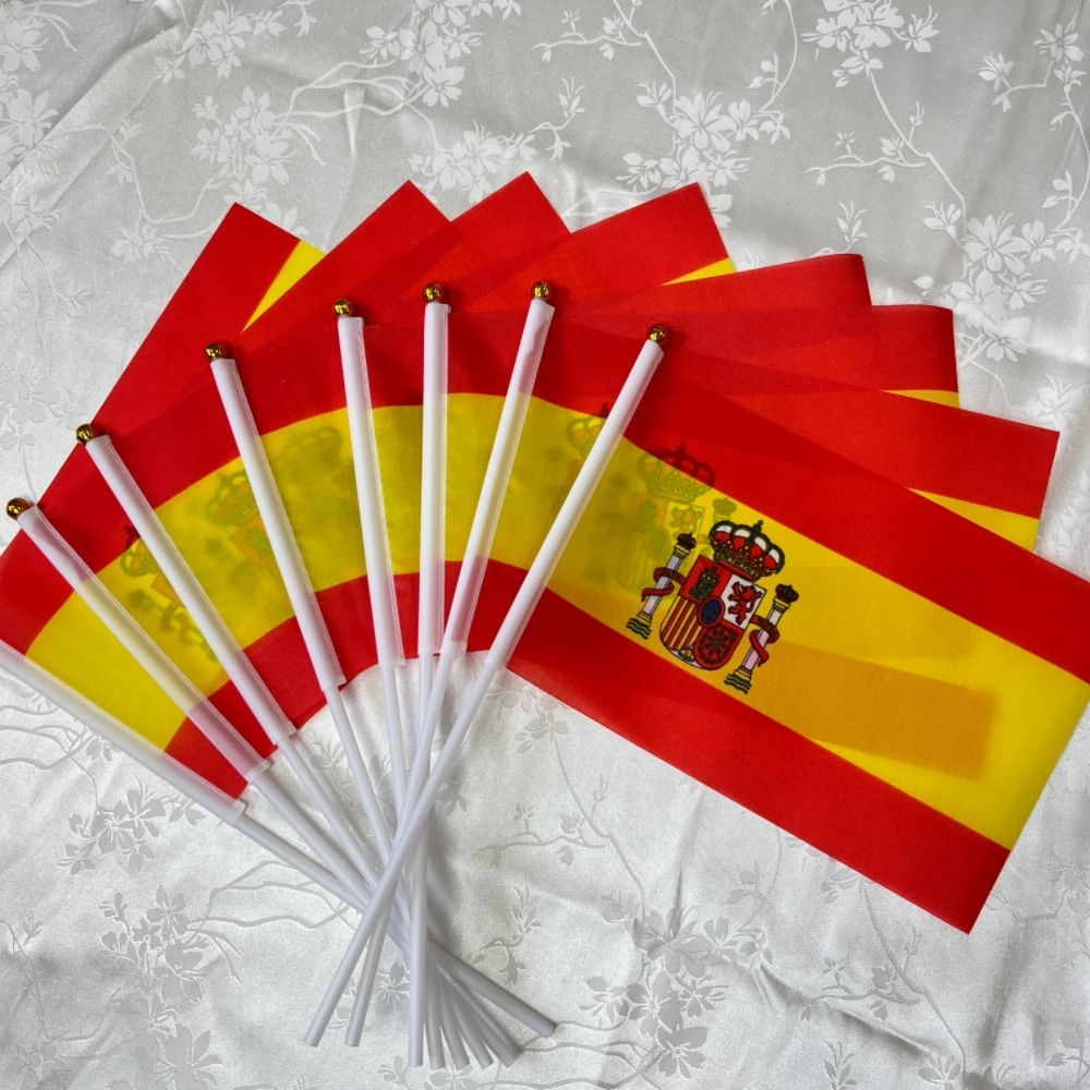 Spain Flags 14x21cm Handheld National Spanish Flag With Flagpole with Plastic Flagpole hand waving FlagsDecoration Celebration