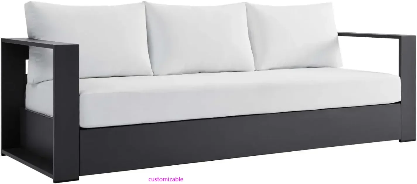 Tahoe Outdoor Patio Powder-Coated Aluminum Sofa, Gray White  Read more