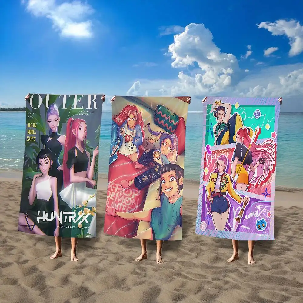 Kpop D-demons Hunters Anime Beach Towel Cartoon Cute Summer Kids Large Bath Beach Towel Microfiber Absorbent For Swimming Travel