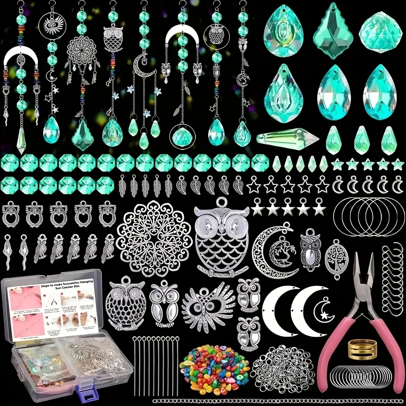 420-Piece Crystal Rainbow Maker - Adult Suncatcher DIY Kit for Weddings with Glass Beads & Tools - Owl Design Indoor Window Sun