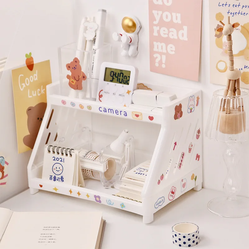 Kawaii Cat's Claw Two-layer Hollow Plastic Storage Rack Organizer Desktop Kitchen Organizer Rack Bathroom Cosmetic Storage Shelf