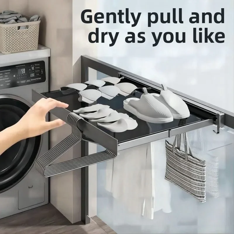 Invisible Bath Towel Rack Bathroom Folding Integrated Perforation-free Bathroom Hanging Clothes Storage Rack Storage Shelf Shelf