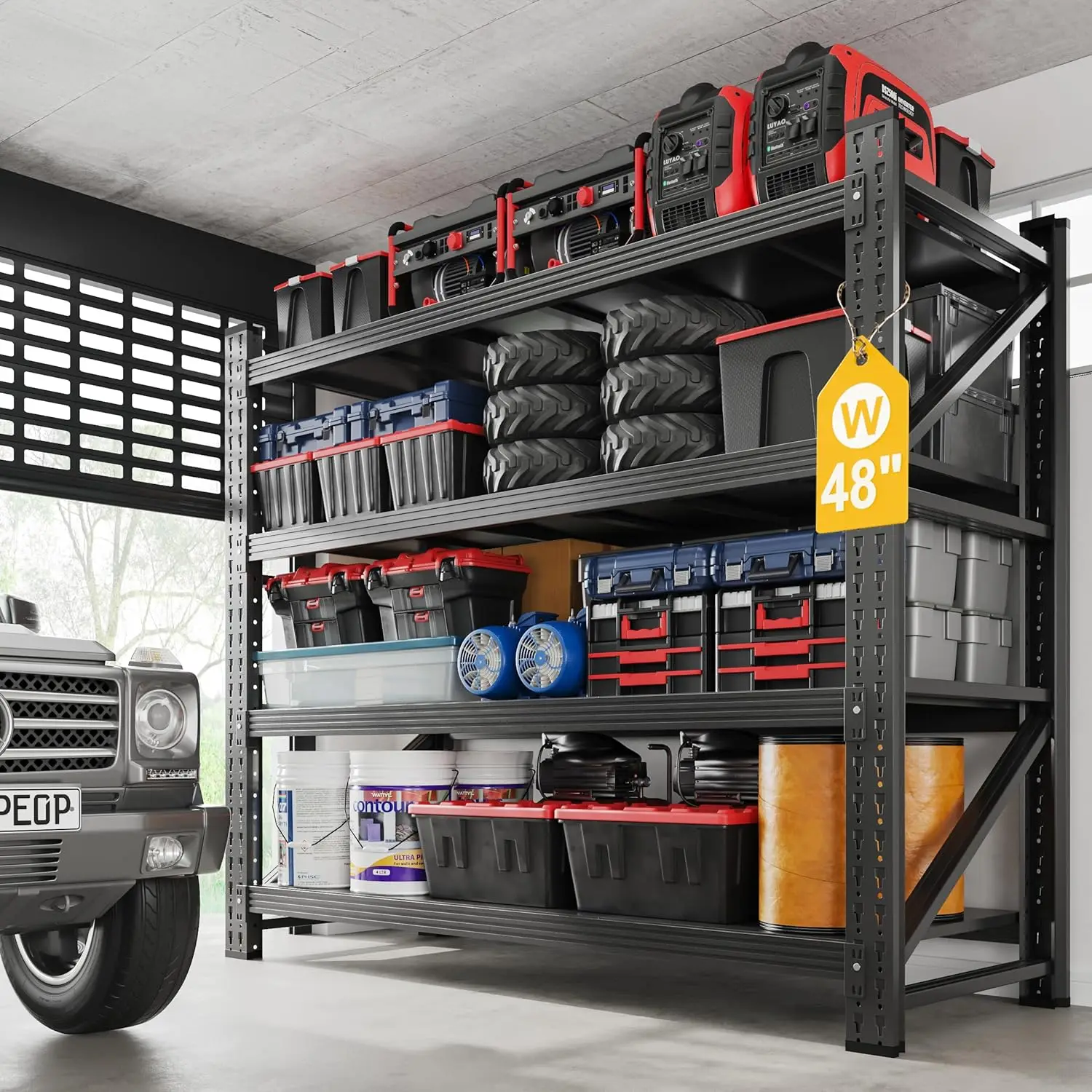 3000LBS Metal Steel Storage Shelves - 48" W Black 4 Tier Heavy Duty Rack Commercial Industrial Shelving with Adjustable Shelf